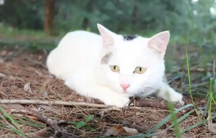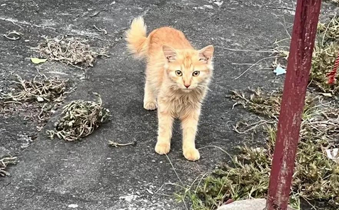 第二天我带了猫条去,它远远地闻着味,却不敢靠近。我把零食放在离它两步远的台阶上,退到树后。透过雨帘看它:先探出粉粉的鼻子嗅了嗅,耳朵抖了抖,接着整个身子像弹簧似的弹过去,叼起猫条又窜回原地,小脑袋左顾右盼着吃完,最后竟朝我蹲的方向歪了歪头。第三次见面时,它已经敢用湿漉漉的小舌头舔我指尖了,我给它起名"小橘"。