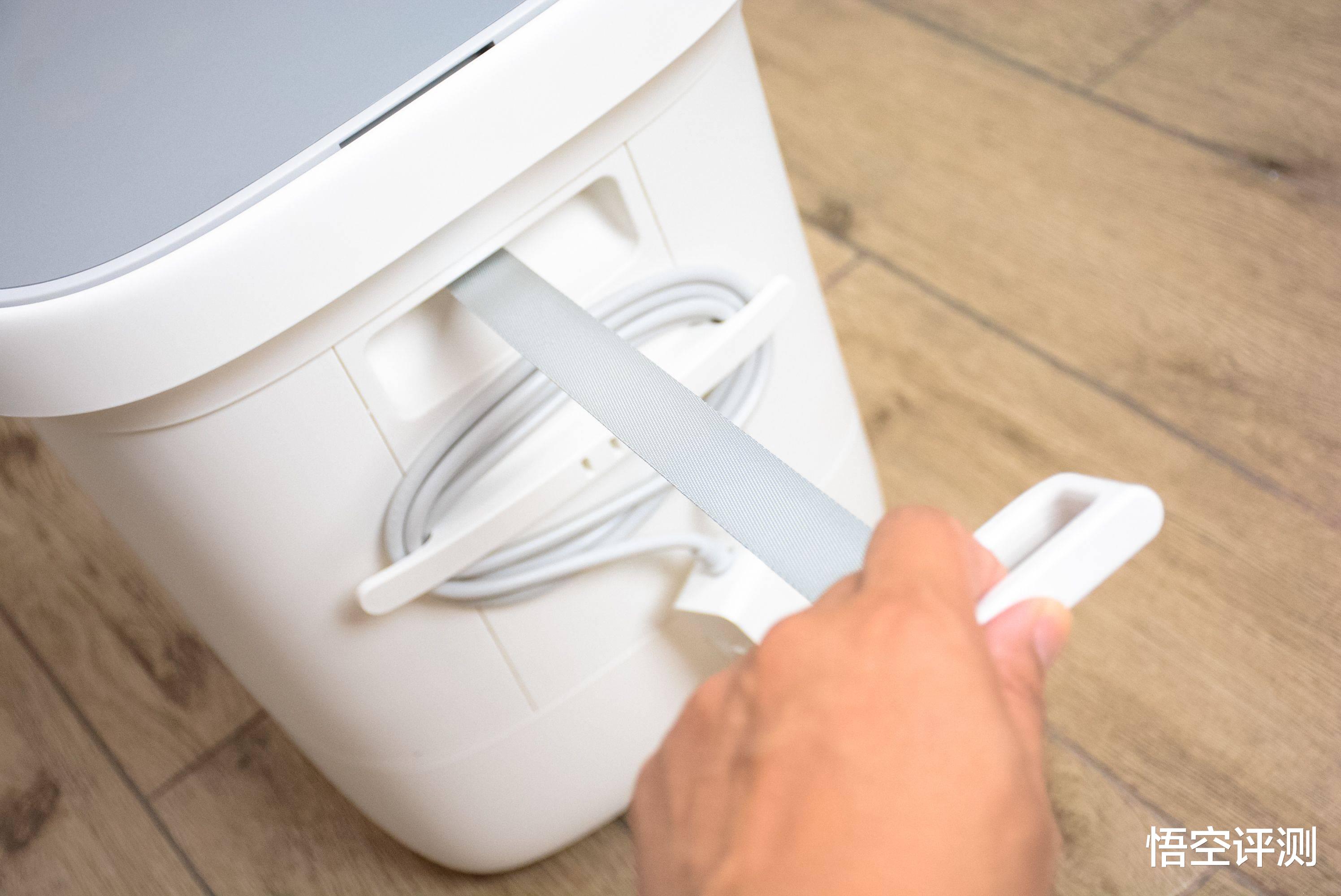 电源线,设计在了米家智能气囊足浴器2的对面,而且还贴心的设计了缠线器。