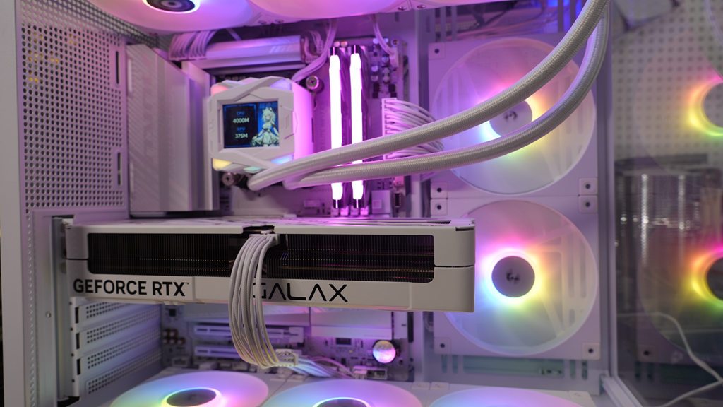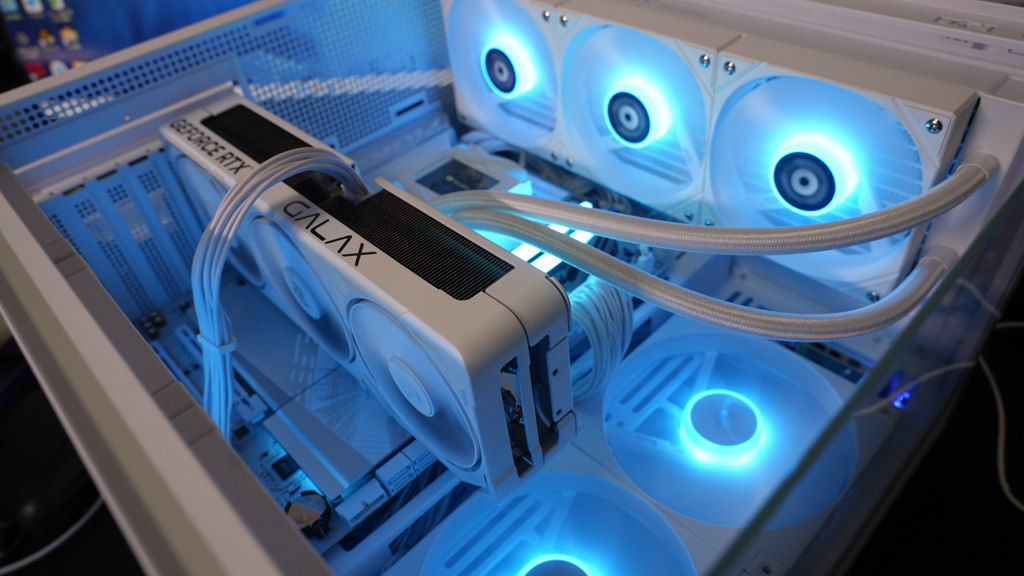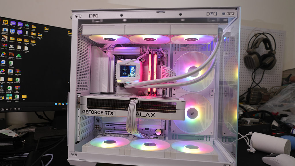影驰RTX5080金属大师白色版本,通体是白色风格,适合打造一台全白色主机,显卡配备了给力的三风扇多热管规格的散热器。