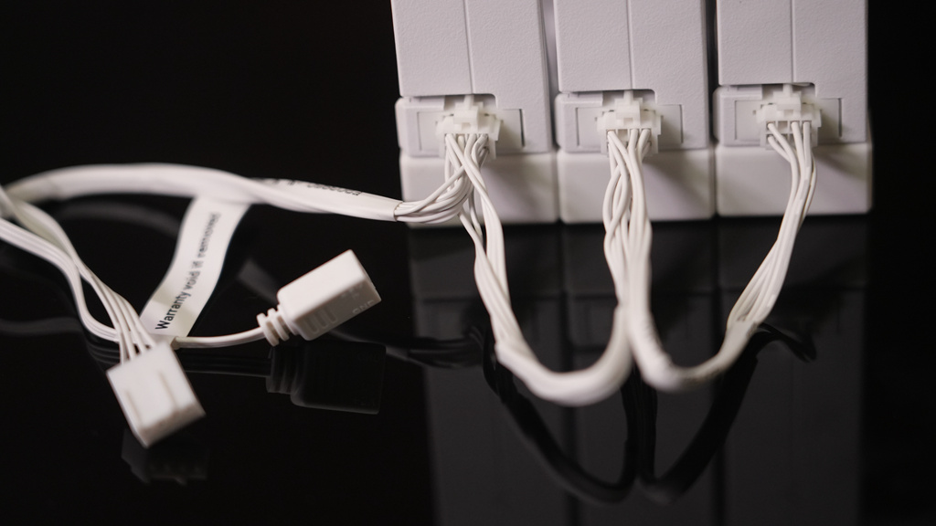 风扇外观采用了极简的设计风格,以简约为美,风扇边框内置了8PIN双向连接接口,实现一线通连接方式。