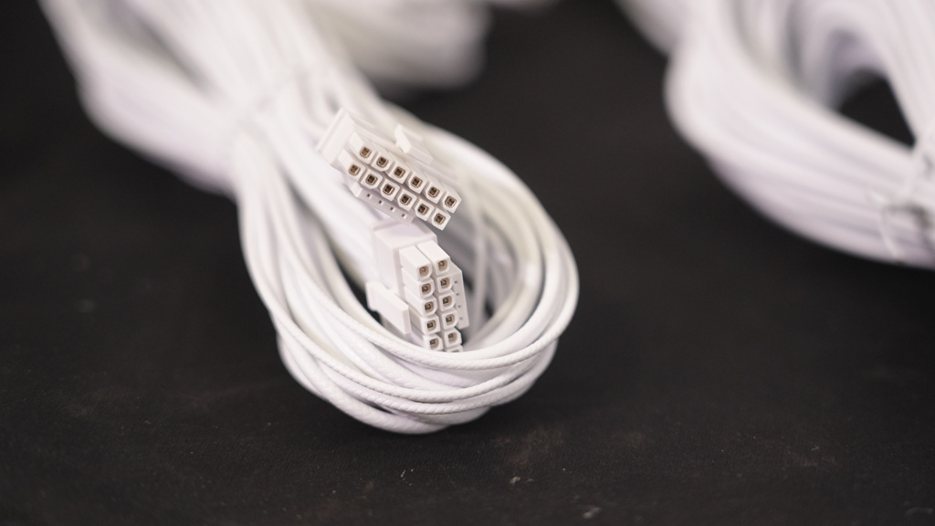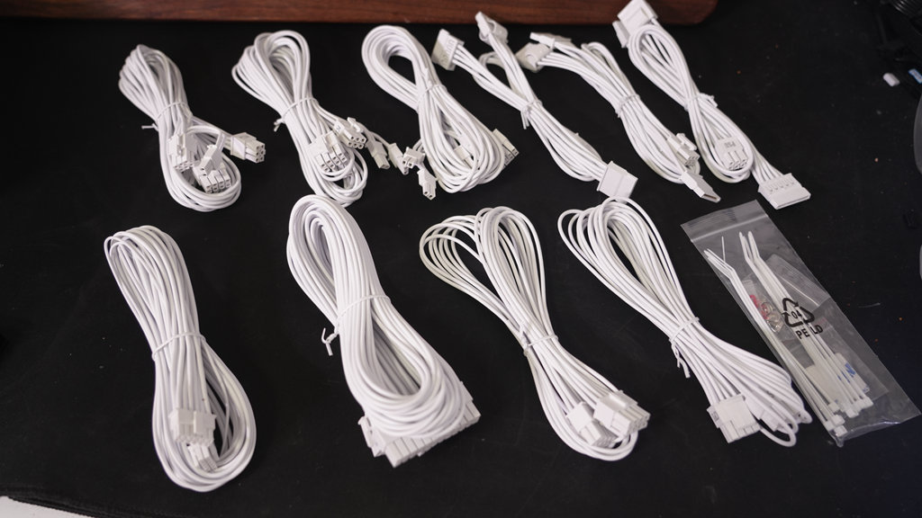 电源附带了10条模组线,线材数量非常充足,白色的模组线材质是软硅胶,可以让走线更美观。