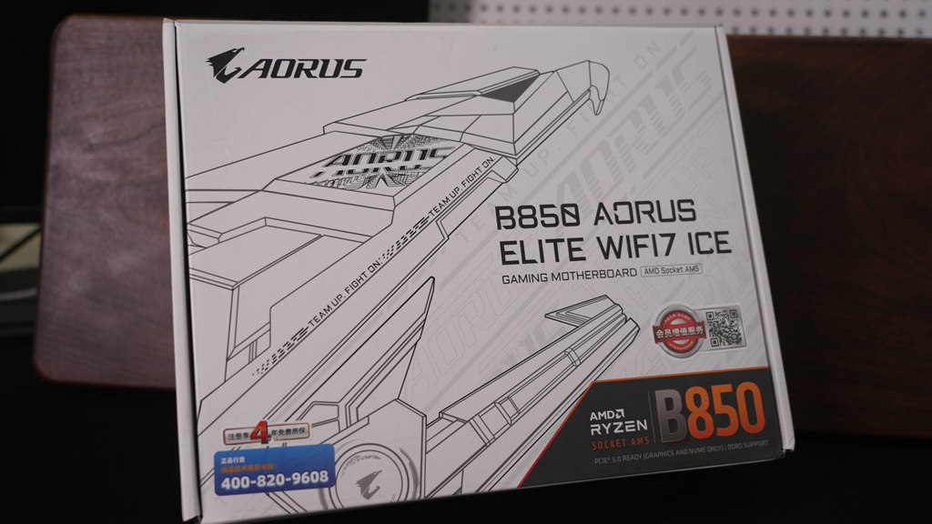 主板使用了技嘉B850 AORUS ELITE WIFI7 ICE冰雕主板,这款主板主打全尺寸、强散热和高颜值。