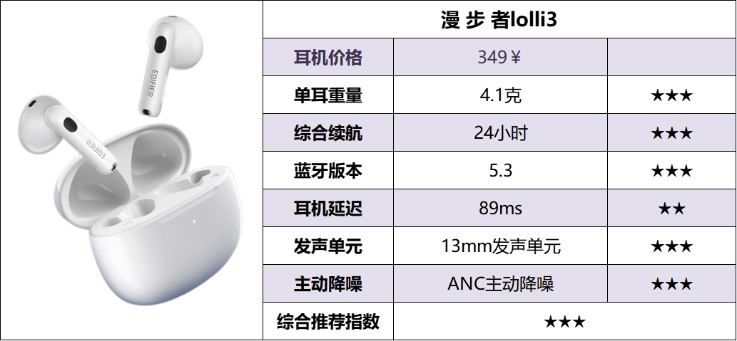 10、漫 步 者lolli3蓝牙耳机