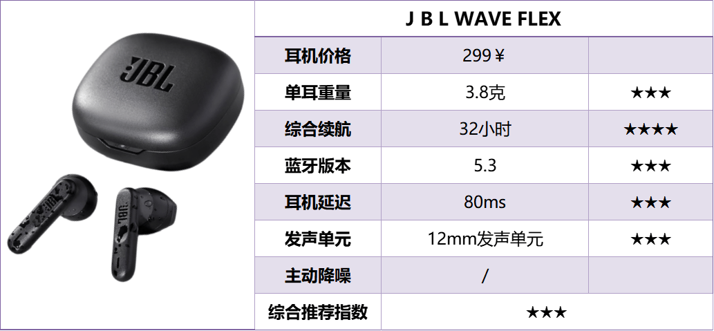 声音表现方面,搭载 12mm 动圈单元,延续了 JBL 在低频调校上的传统优势,低频量感充足,下潜也较为出色,风格偏向浑厚有力。但由于未配备主动降噪功能,中高频特别是人声部分的表现相对一般,清晰度不算突出。