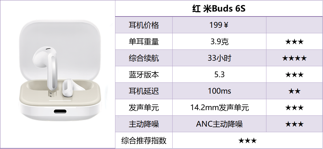 2、红 米Buds 6S蓝牙耳机