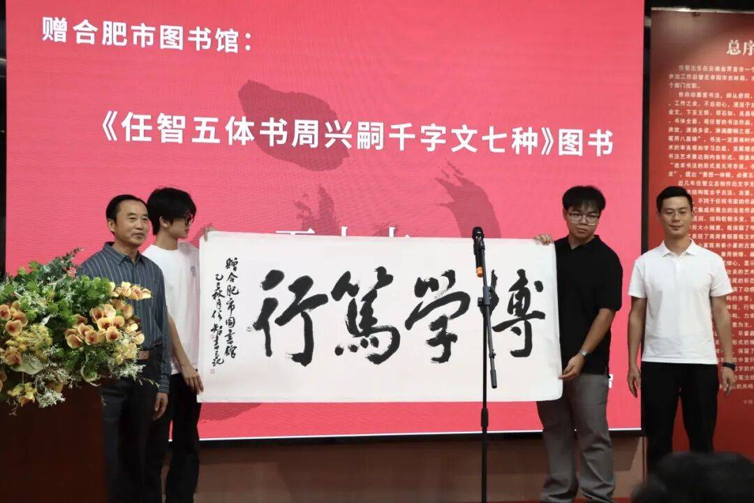 本次展览任智先生分别向安徽省图书馆、合肥市图书馆捐赠五十本“任智五体书周兴嗣‘千字文’七种”图书及书法作品各一幅,并向迅达·墨缘艺术馆捐赠书法作品一幅。图 | 安徽省书协第五届副主席,阜阳市文联原主席 任智