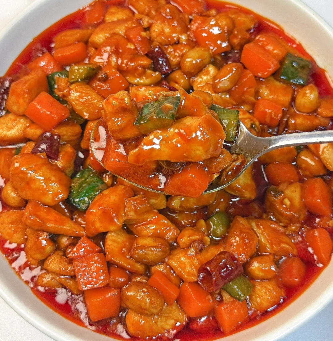 别看宫保鸡丁现在是个"国民下饭菜",人家以前可是"官二代"呢!相传清朝有个叫丁宝桢的大官(太子太保,人称"丁宫保"),超级爱吃鸡和花生米,还特别重口味(无辣不欢)。某天他让家厨把这两样食材加上辣椒爆炒,结果香到隔壁同僚翻墙来蹭饭!后来这道菜就以他的官衔命名,成了"宫保鸡丁"(所以说,吃货改变世界不是梦!)