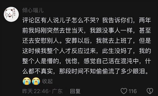 有网友认为,孩子必须得控制自己的情绪,只有这样,才能代替妈妈照顾好外公外婆。