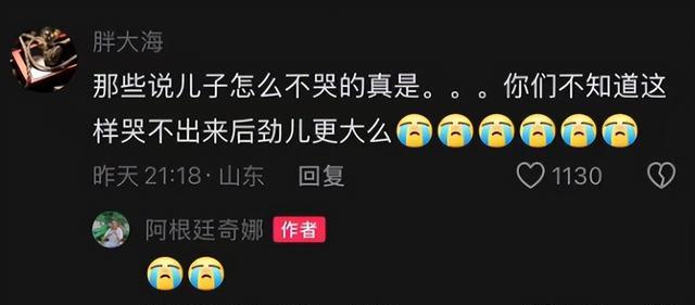 也有人以自己的亲身经历,来告诉那些质疑儿子不哭的原因。