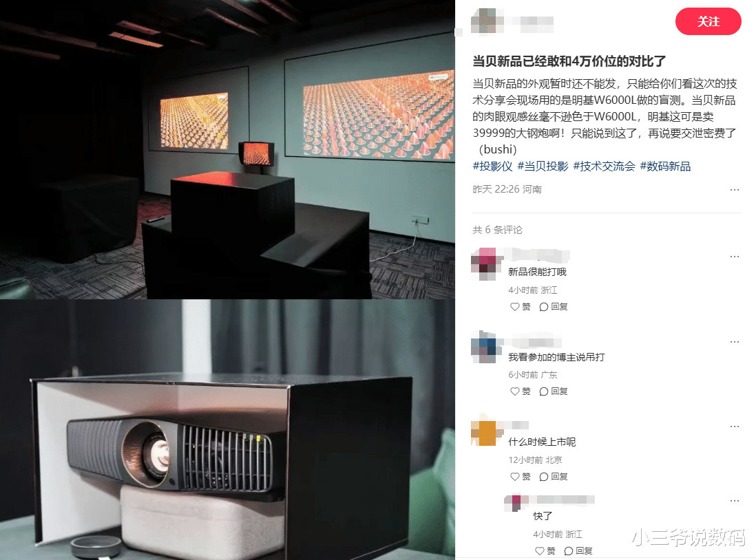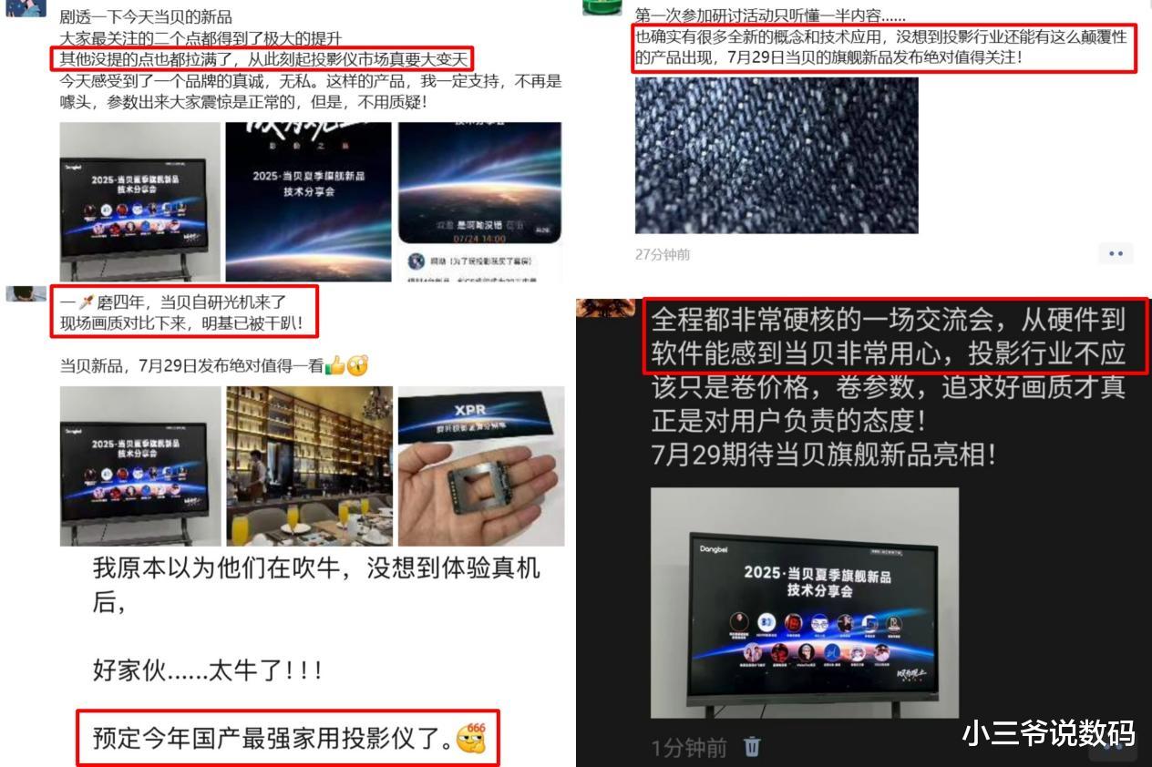 还有不少参加完分享会的博主纷纷发社交媒体,表示这次有全新的配置,而且升级了不止一个度,绝不仅仅是噱头,是真材实料,敢拆敢实测;还有博主直接说国产最强家用投影要诞生了,更是把当贝S7 Ultra Max的期待值拉满。