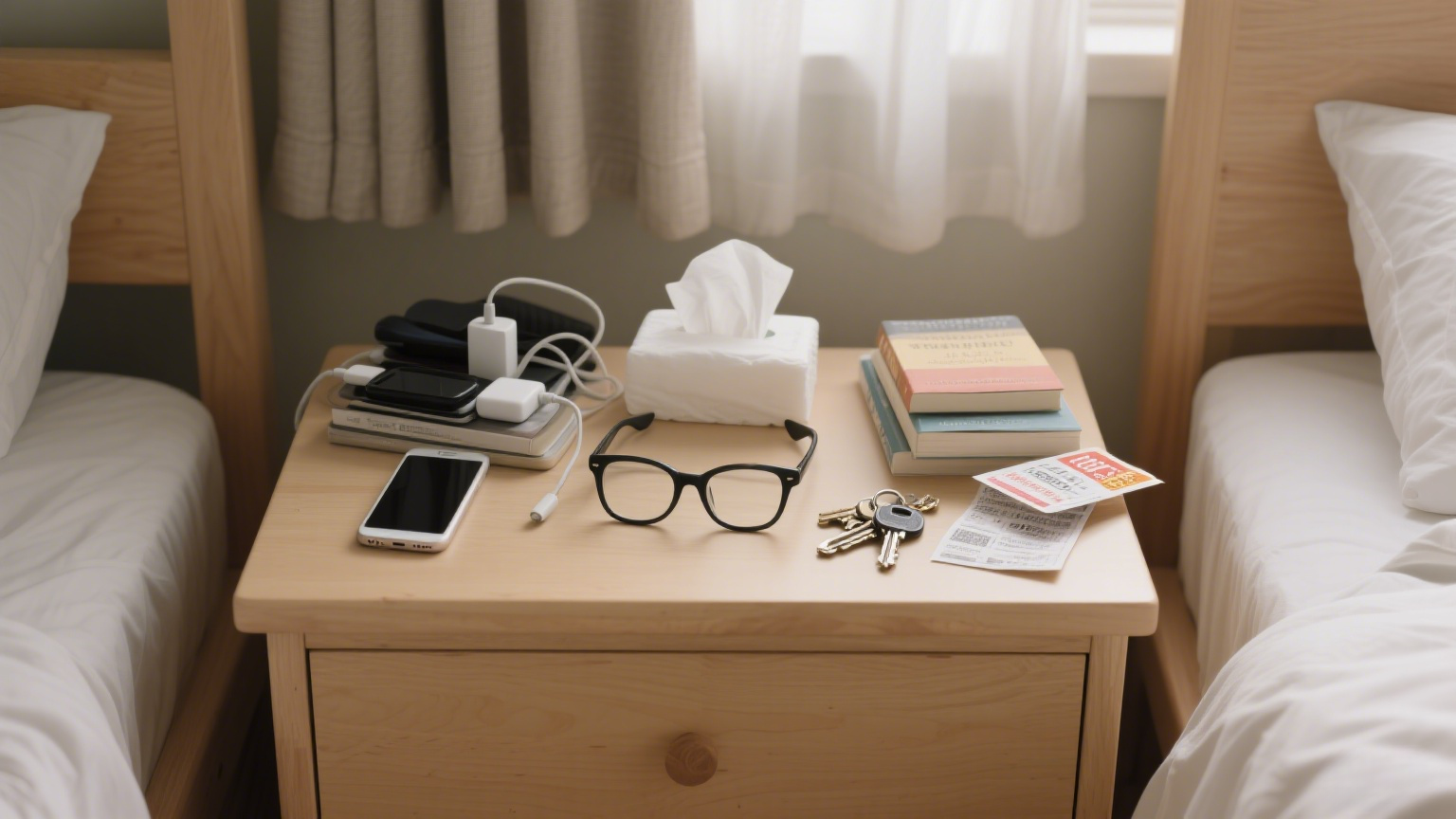 一、物品筛选去冗先将床头柜上所有物品全部取出,逐件筛选:① 睡前常用物品(每天睡前 / 起床需使用,如手机、眼镜、充电器、常用护肤品);② 偶尔使用物品(每周使用 1-2 次,如睡前读物、备用纸巾、耳塞);③ 闲置物品(1 个月以上未使用,如旧钥匙、过期优惠券、闲置饰品)。闲置物品可收纳到衣柜抽屉或丢弃,避免占用床头柜有限空间。