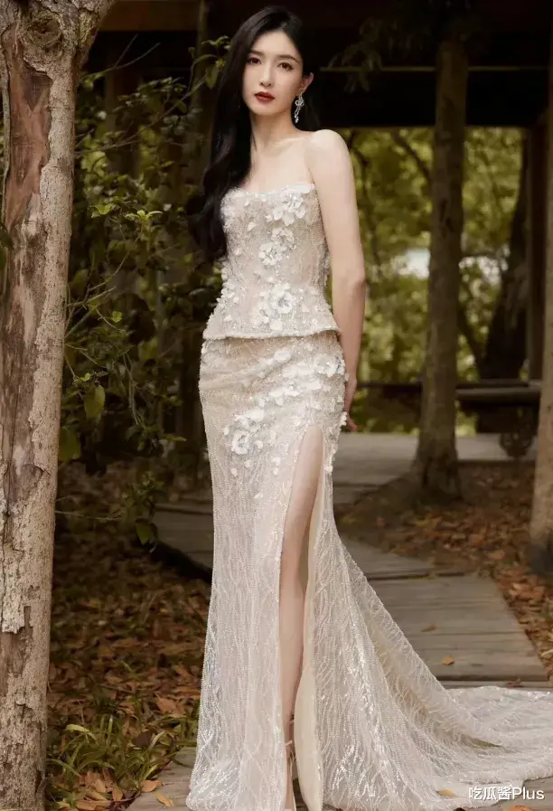 这一身抹胸长裙的设计让江疏影的肩部线条和锁骨展露无遗,显得格外修长,浑身散发出迷人气息。开叉的设计则为这条裙子增添了几分性感,随着她的走动,裙摆轻划而过,仿佛在诉说着她的自信与魅力,令所有目光都无法移开。这种优雅与性感的完美结合,正是江疏影独特韵味的体现。