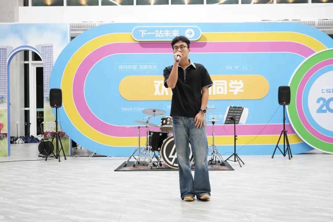 大二学长的五首经典歌曲联唱让同学们大饱耳福,演唱者深情投入,歌声或温柔婉转,或高亢激昂,用独特的嗓音诉说着不同的人生精彩,使大家沉浸式感受音乐的魅力。