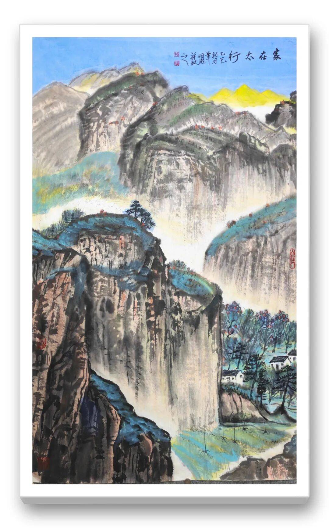 聂华明老师的山水画,更蕴含着对自然与生活的深情体悟。中国山水画向来强调“外师造化,中得心源”,画家需从自然中汲取灵感,再通过内心的感悟转化为艺术形象。聂老师的作品,无论是描绘雄浑的太行山脉,还是展现宁静的山村景致,都能让人感受到他对自然的细致观察与真挚情感。那连绵的太行山峰,云雾缭绕,山间点缀着几处屋舍与树木,既展现出太行山的雄伟壮阔,又流露出一种人与自然和谐共处的温情。画中的每一座山峰、每一条溪流,都仿佛是他亲自踏足、用心感受过的,这种源于生活的真实感,让他的作品具有了打动人心的力量,也让传统山水画“畅神”的功能在现代语境下得到了新的诠释。