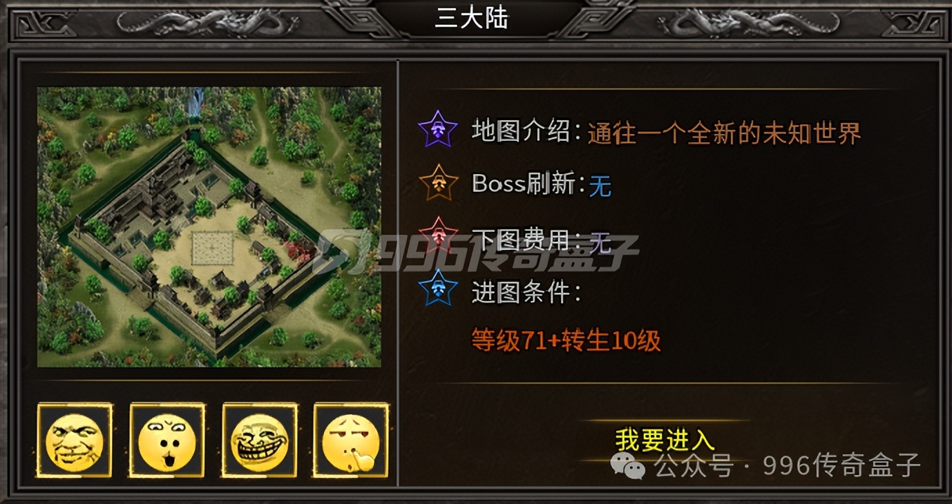 二大陆算是一大陆和三大陆的过渡,虽然新增了很多玩法,比如宝石镶嵌、首饰升星等等,但最重要的还是尽快下三大陆。三大陆会有很多特色地图,比如紫金迷宫、迷失国度、翡翠冰宫、雄霸天下,这些都爆专属装备。其中剑门要塞和幻境之地一层更是刷新世界BOSS,是本服爆率最高的BOSS!这些高级的专属、装备、生肖和首饰大部分都能用来回收非绑元宝,用来购买赞助解绑,然后优先提升顶部的切割,之后再去一大陆的狂暴之地和远古圣地这些副本中刷材料!