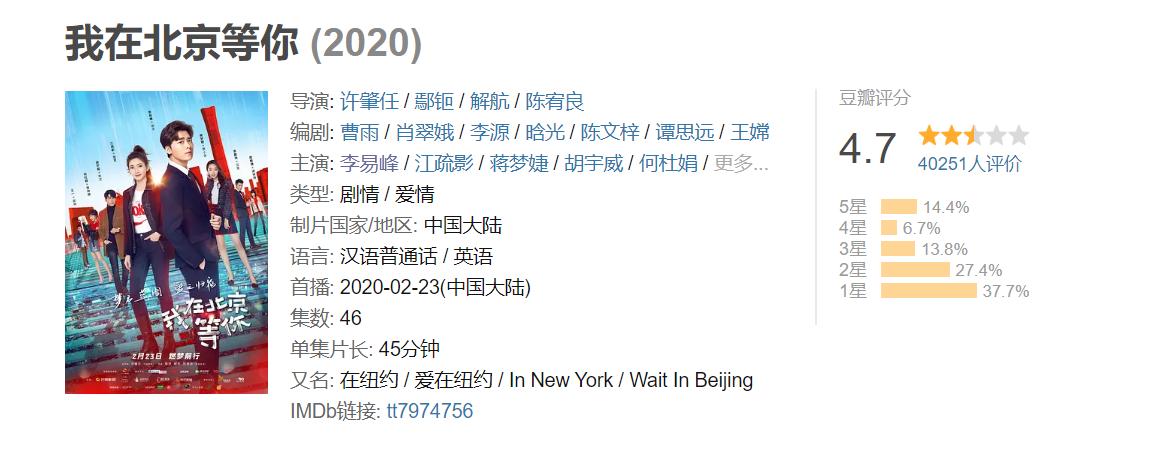 2月份,李易峰和江疏影合作,主演了《我在北京等你》,这部剧仅获得4.7分,更令人摸不着头脑的是,作为主演,李易峰到后面戏份越来越少。说句不客气的话,这部剧“糊得”无声无息。