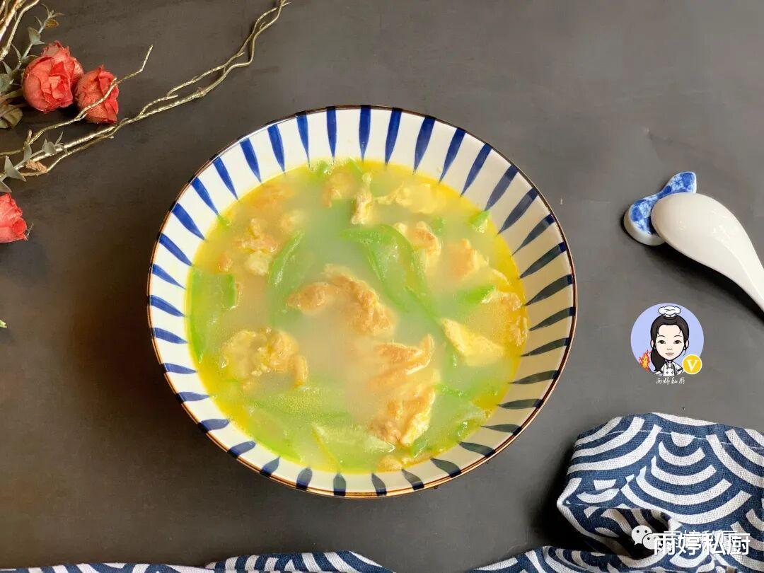 4. 接着放入丝瓜片煮到熟透,撒上少许盐调味就搞定出锅!瞧这汤色,青绿透鹅黄,清香爽口不油腻,好吃又营养,你一定要试试看!