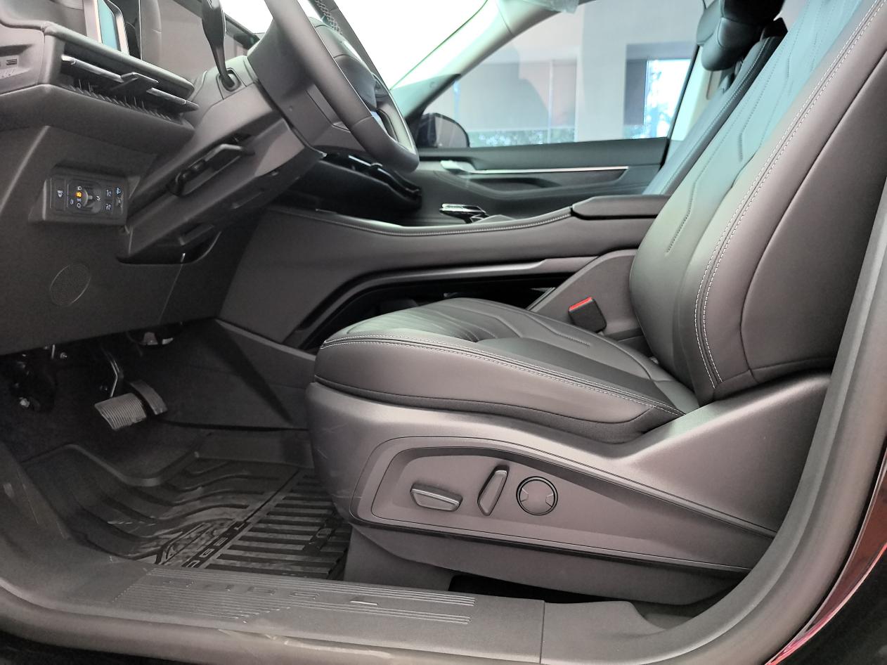 之前试驾时纠结过旗舰版,半苯胺座椅确实舒服,但预算有限,最后还是选了燃油的二豪。现在想想挺值——新款增配了方向盘加热和二排座椅加热,冬天不怕冻手冻屁股了!另外陡坡自动开启540度透明底盘也挺实用,走烂路时心里踏实。