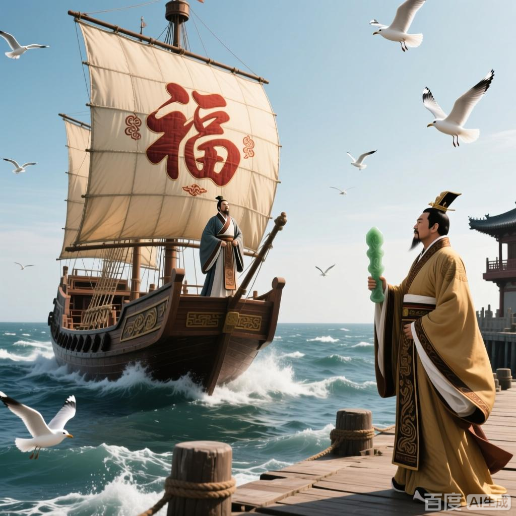 因为这样的认知,秦始皇统一六国后,很快就产生对长生的渴望。《史记・秦始皇本纪》记载,当秦始皇听闻渤海中有“蓬莱、方丈、瀛洲” 三座仙山,便派方士徐福率“童男童女数千人”,携带“五谷种籽、百工技艺” 出海寻药。第一次东渡后,徐福以“海中有大鲛鱼阻碍” 为由返回,秦始皇没有怀疑,反倒亲自率船队出海“射鲛鱼”,为徐福扫清“障碍”。其后,徐福第二次出海,带着更庞大的队伍与物资“消失在东海”。结果是,秦始皇最终也没有等到“长生药”。
