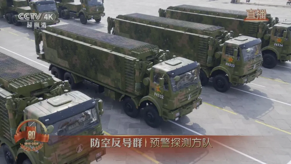 九三阅兵中,受阅的预警探测方队,解说词直接就是非常明确的:“受阅的4型装备都是国产新一代高机动雷达,远近衔接、协同组网,能够探测隐身飞机、弹道导弹等目标,是守望国家空天安全的‘千里眼’。”