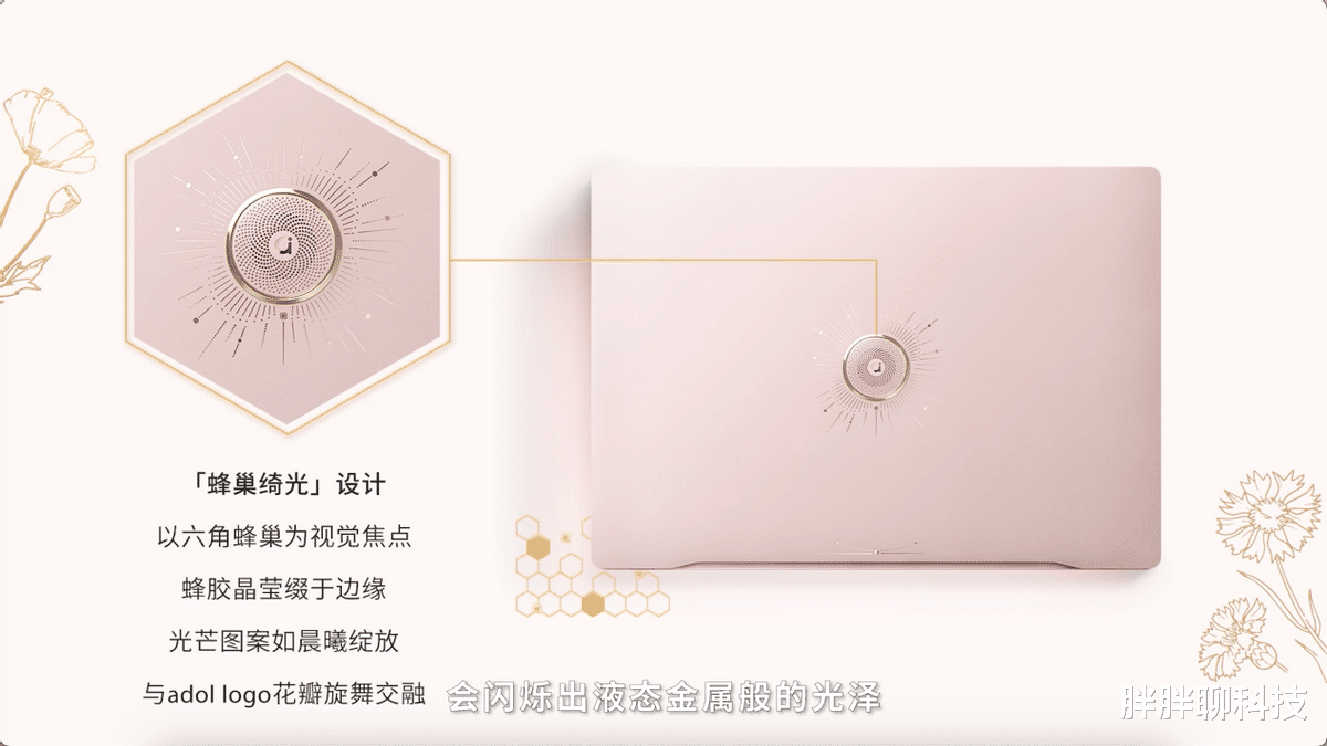为颂扬新一代蓬勃美学生命力,华硕a豆与法国娇兰在“光之美学”的框架下相遇,将视觉艺术转化为嗅觉诗篇。机身A面加入独创香片匣,以馥郁香氛疗愈情绪,助你尽情享受被光与香氛宠溺的美好瞬间,采用全新「蜂巢绮光」设计,以六角蜂巢为视觉焦点,蜂胶晶莹缀于边缘,光芒图案如晨曦绽放,与adol logo花瓣旋舞交融,诠释“为美而生”的极致境界,尽显品质生活美学。
