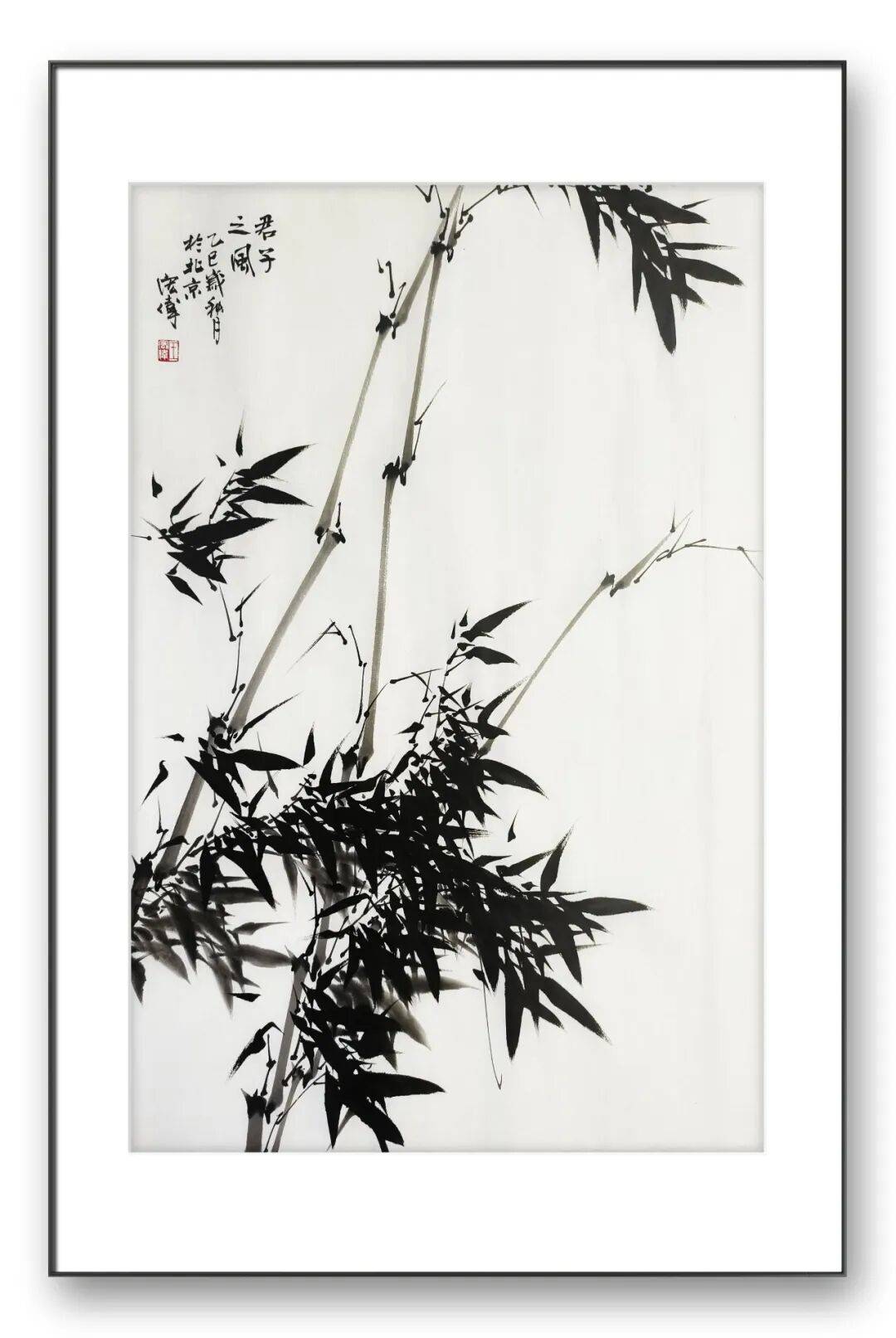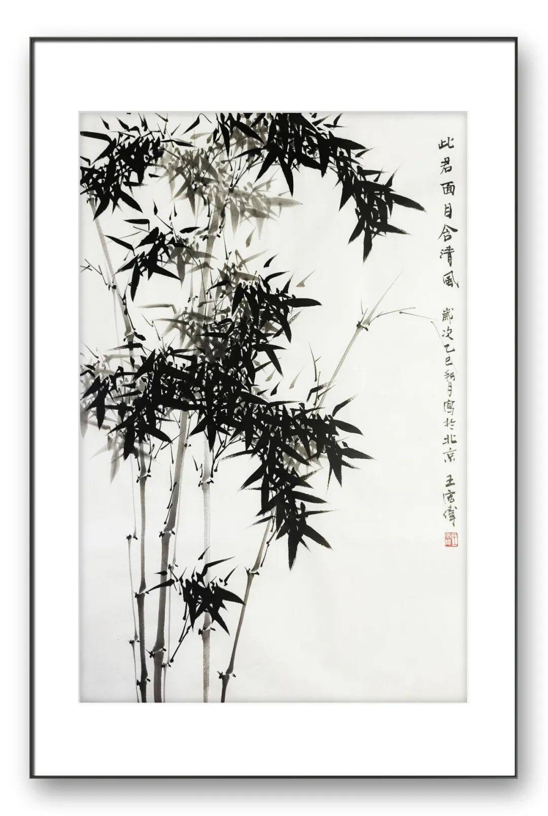 王宏伟的艺术根基,筑于“师古而不泥古”的扎实积淀。四十余年的创作生涯,他始终以临摹为阶,从历代画竹名家的笔墨中汲取养分。他深谙郑板桥“眼中之竹—胸中之竹—手中之竹”的创作哲学,先于传统法度中锤炼技法:以篆籀笔法勾勒竹枝,圆劲如铁尽显骨力;用飞白技法点染竹叶,飘逸灵动中藏墨色层次,将“墨分五色”的精髓融于笔端。不同于当下急于求成的浮躁风气,他沉心拜师学艺,在对古法的反复研习中,既规避了流于表面的程式化描摹,又摆脱了“骨多肉少”的技法局限,为自我风格的形成打下坚实根基。