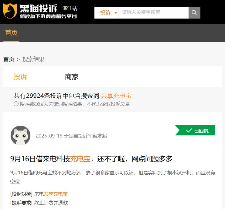 例如黑猫投诉平台聚焦于充电效率低、恶意扣费、归还难等相关问题,投诉就近3万条。