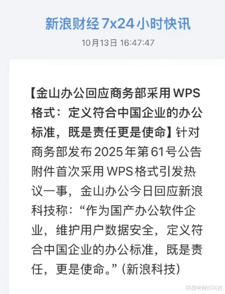 近日,商务部发稀土管制公告,附件居然破天荒用了WPS格式,直接把#金山办公回应商务部采用WPS格式#话题顶到热搜!别以为这只是换个办公软件,这波“格式反杀”简直比爽剧还上头!