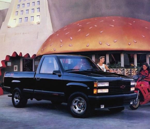 在20世纪90年代初,高性能皮卡的概念逐渐兴起。雪佛兰Silverado454 SS正是代表车型之一。454 SS的特点是将大发动机放入相对较小的车体。它基于C1500,是一款轻型、两轮驱动的皮卡。