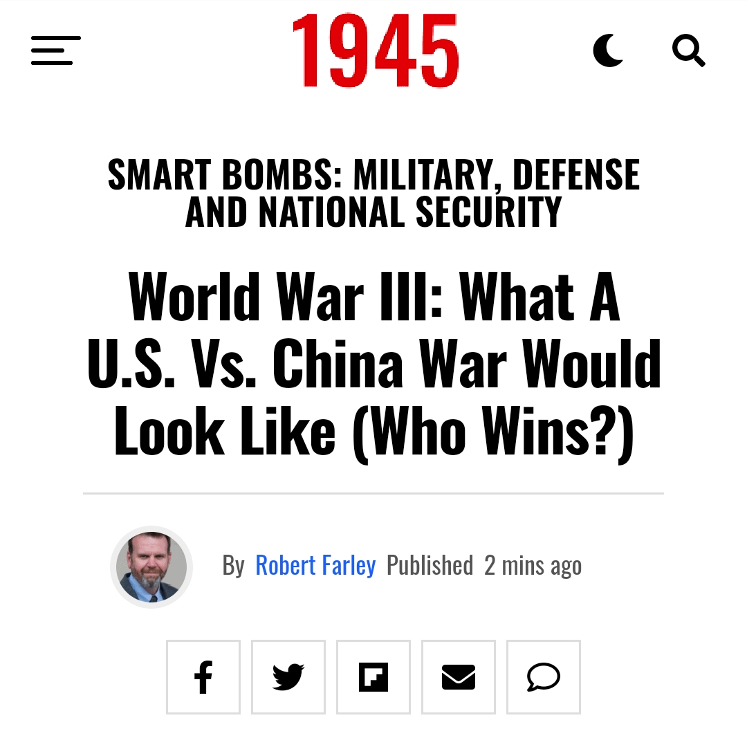 最近半年来,随着美国不断在台海问题上横加干涉,以及台当局的不断折腾,解放军围绕台海分别在2022年8月份和2023年4月份举行了大规模军事演习,台海问题也再次让世界高度关注起来,其中包括美国的一些军事学者。前段时间美国军事专家罗伯特法利在美媒发表了一篇标题为《World War III: What A U.S. Vs. China War Would Look Like (Who Wins?)》的文章,对中美可能围绕台海爆发的冲突做了一番全面预测。