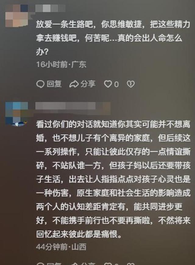 最后希望他们能够解决两人之间的问题,都给对方留点颜面,也让孩子别这么可怜了。