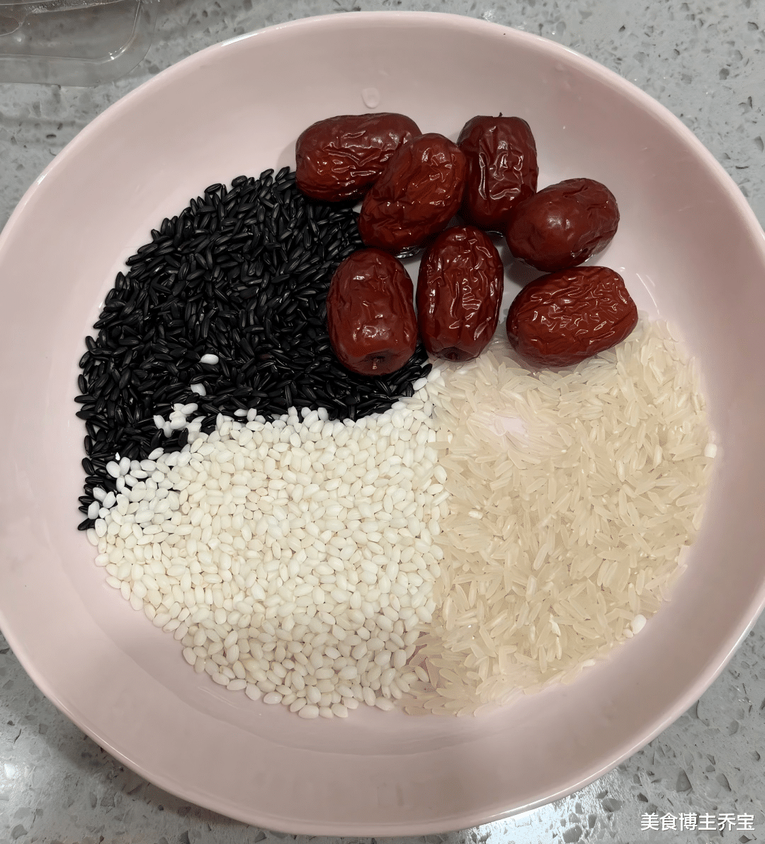 需要准备食材:黑米、糯米、牛奶、红枣、冰糖