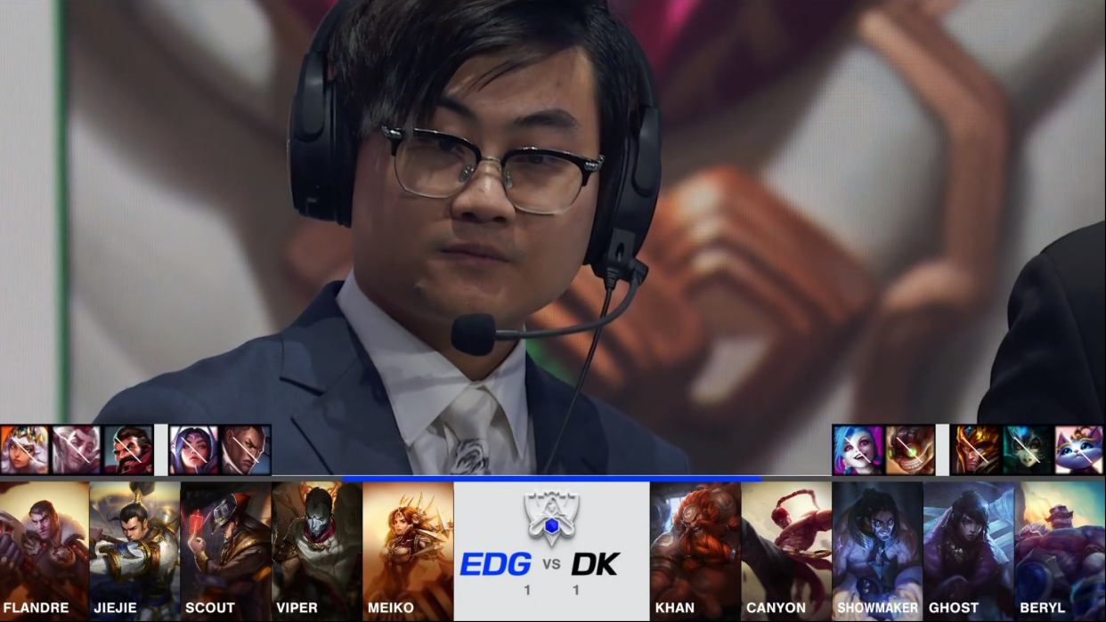 比赛情况。第一把比赛,EDG战胜DK。这把比赛,DK上单选的亚索几乎是0作用,对线没声音,就连打团也是如此。此外,showmaker的妖姬本来被各位观众以为要出奇制胜,结果被皇子克制得死死的。