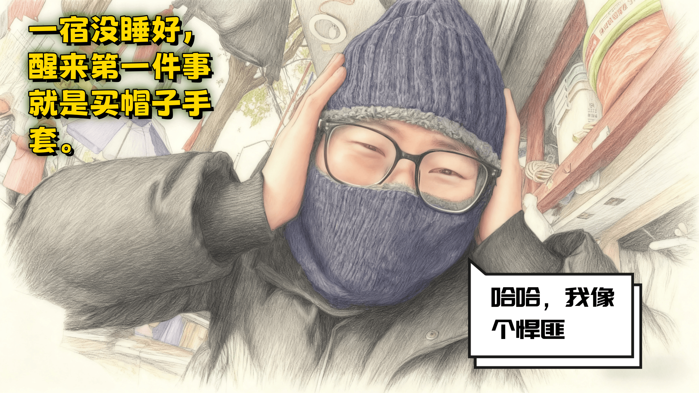 一宿没睡好,醒来第一件事就是买帽子手套。