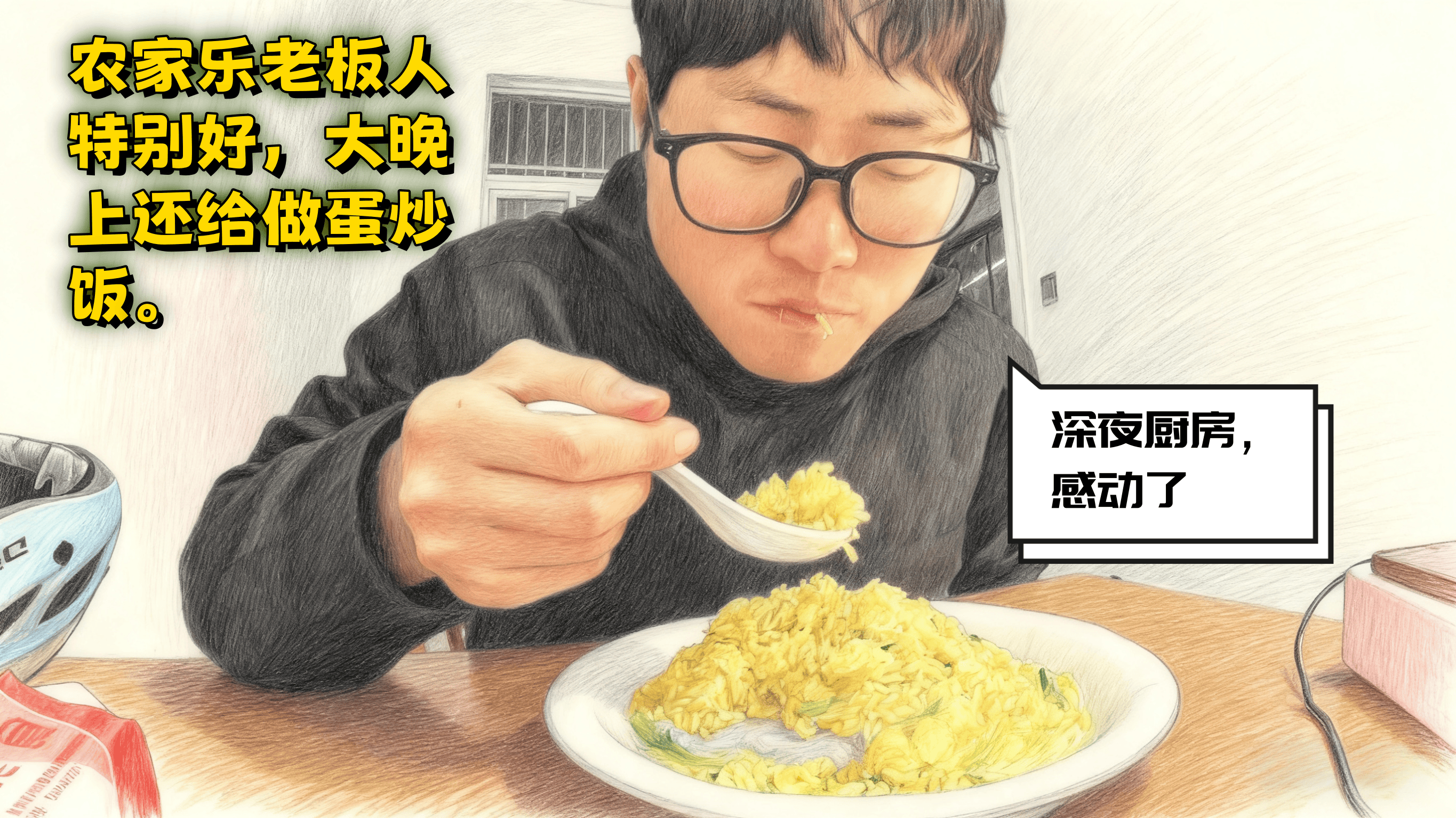 农家乐老板人特别好,大晚上还给做蛋炒饭。
