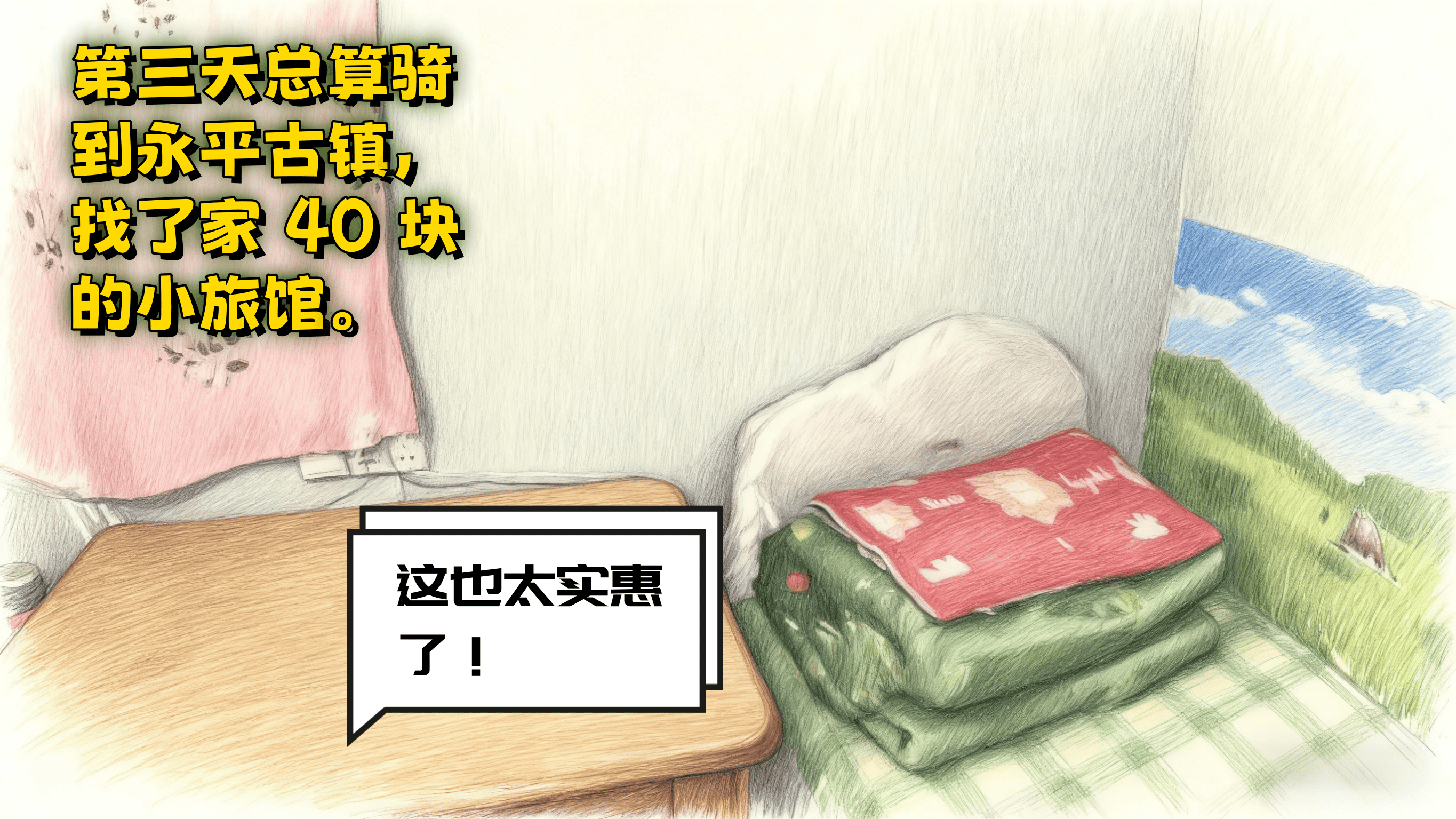 第三天总算骑到永平古镇,找了家 40 块的小旅馆。
