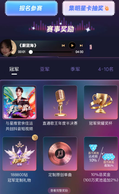 目前,“我是歌王S2”已经开始接受报名,报名时间将持续到6月20日。相较于歌王S1,S2一共又两条赛道,竞争激烈程度将下降许多。这一次机会难得,无论你是男生还是女生,只要你对自己的歌喉有信心,都可以踊跃参加。两条赛道的奖励同样丰富,两个赛道意味着奖励多了一倍,你真的不来参加吗?