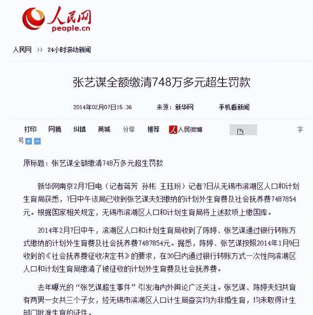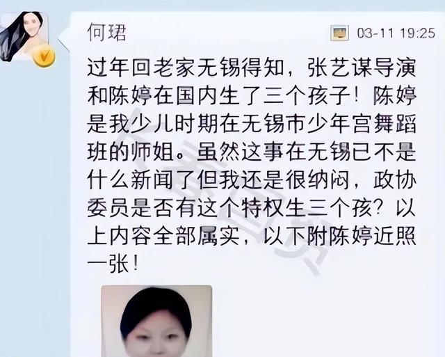 2012年3月11日,女演员何珺爆料张艺谋已结婚生子,此消息一出,张艺谋瞬间成为海内外舆论的风暴中心。被曝光后,张艺谋并未即刻回应,而是任由舆论发酵。直到被造谣生了七个孩子后,他才现身回应。2013年12月,张艺谋和陈婷接受了新华社记者的专访,承认他们在2011年于江苏无锡办理了结婚登记,并且育有三个孩子的事实,并且表示愿意接受相关部门的处罚。2014年2月7日,他被依法征收计划外生育费和社会抚养费共计7487854元。虽然隐藏了14年的秘密公之于众,但对于陈婷和三个孩子来说,他们终于得到了名正言顺的身份。