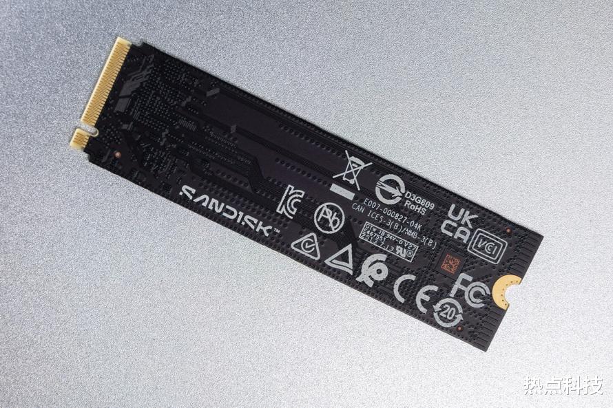 闪迪SN5100是一款PCIe 4.0固态硬盘,但是使用了不少新技术。全容量闪存芯片均是采用闪迪原厂SANDISK BiCS8 QLC 3D CBA NAND,通过外围电路直接键合到存储阵列(CBA,CMOS Bonded to Array)技术显著提升了存储密度和性能, M.2 2280单面PCB DRAM-Less架构可以提供高达4TB容量。而我们测试的2TB版本,在单面PCB、单闪存芯片下就有2TB容量。