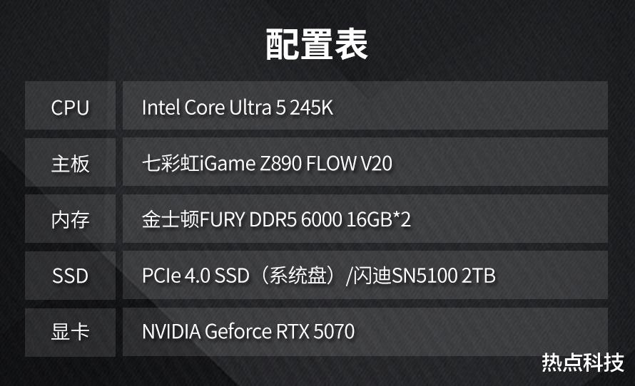 按照官方说法,闪迪SN5100性能比上一代提升了30%,那实际性能表现是如何的呢。我们在Intel平台上进行了测试,CPU是Intel Core Ultra 5 245K,搭配了七彩虹iGame Z890 FLOW V20主板,闪迪SN5100安装在距离CPU最近的M.2插槽上,测试时采用铝合金散热片+风扇进行主动制冷。