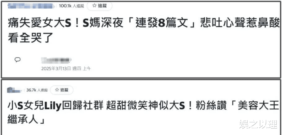 台媒那边更是火上浇油,报道里暗示小S女儿长得像大S,简直就是“小美容大王”。这意思还不明显吗?就是想让大家知道,S家后继有人,就算没了大S,照样能赚钱!