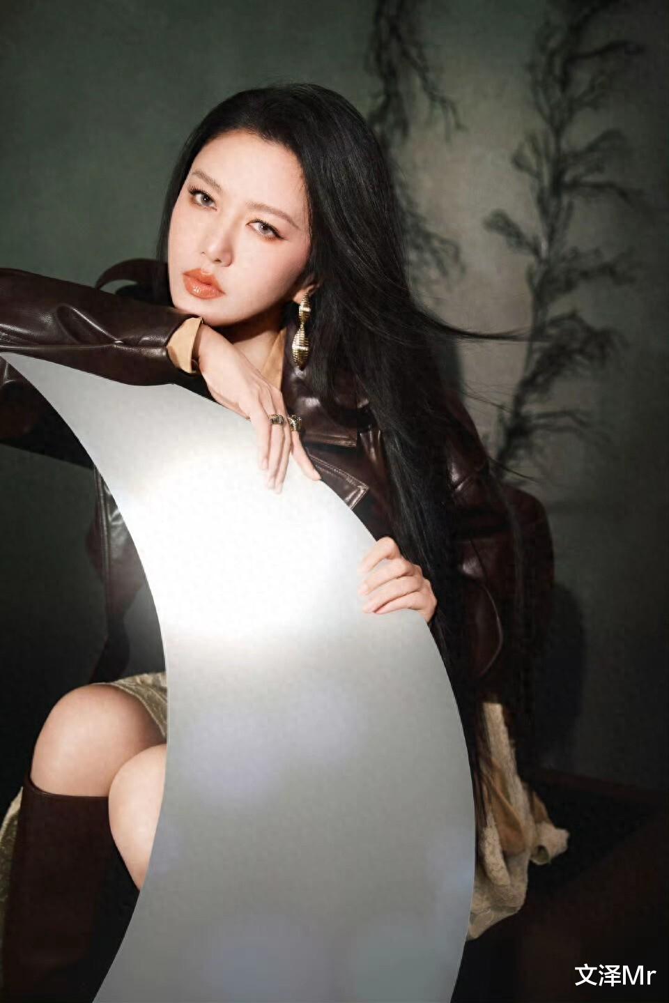 斜倚在弧形白色道具上,谭维维用托腮的随性姿态构筑起一幅暗夜画卷。镜头中,她深邃的眼神比皮衣的纹理更有故事感——这让人想起她担任《绽放》音乐剧女主时,那个在舞台上连演12场不降调的“铁肺女王”。暗调背景的枝影婆娑间,39岁的她反而淬炼出比年轻时更摄人的气场。