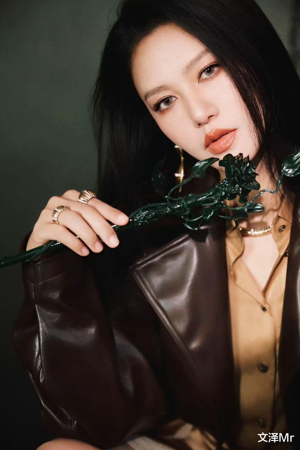 脖颈间的项链与耳饰遥相呼应,右手叠戴的多枚戒指仿佛在诉说:真正的奢华从不喧哗。这份举重若轻的时尚智慧,恰似她面对人生起伏的态度——曾被质疑“歌红人不红”,却用《华阴老腔一声喊》的炸场表演让质疑者噤声。此刻她指尖的花朵,既是柔美的象征,也是冲破束缚的利刃。