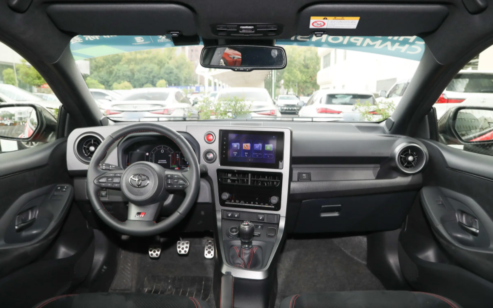 最后便是在座舱方面了,丰田GR YARIS在车内的设计上同样很有运动质感,首当其冲的便是在安全带方面,该车采用了四点式的安全带预留口,即便是跑赛道也是没啥问题的,而且为了提升用户的日常用车体验,车辆更是采用了GR仪表盘,对于喜欢纯粹的驾控体验消费者来说,这个仪表盘肯定是一个加分项,再加上短行程挡把的存在,让我们换挡的速度更快。至于功能配置方面,丰田GR YARIS的表现就不如,同价位的自主车型了。