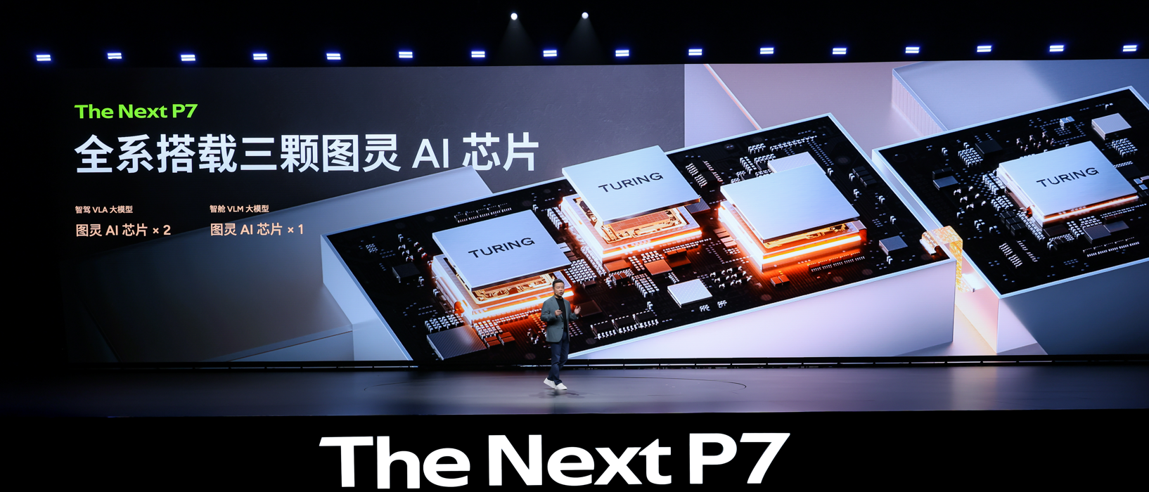 全新小鹏P7全系搭载三颗自研图灵AI芯片,整车有效算力达2250TOPS,全球第一。其中两颗驱动智驾VLA大模型,赋予汽车理解与主动决策能力;另一颗协同8295P芯片驱动智舱VLM大模型,让汽车真正成为“懂你”的AI伙伴。