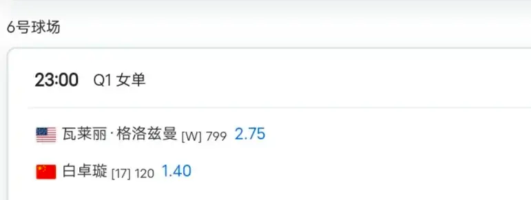 6号球场美网女单资格赛首轮今晚11点,中国小花白卓璇将对阵世界排名第799位的格格兹曼,这将是双方职业生涯首次交手,只要白卓璇正常发挥晋级下一轮的机会很大。
