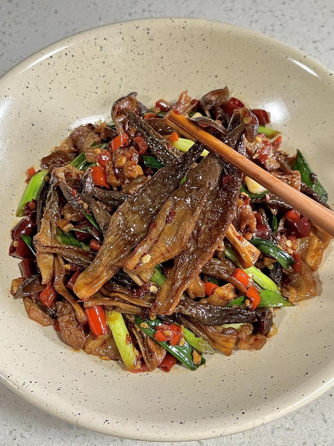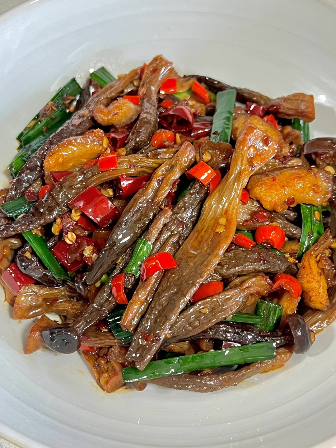• 干货处理:温水泡发30分钟(别用热水!会破坏脆度),泡好后像拧毛巾般挤干水分,剪去老根。