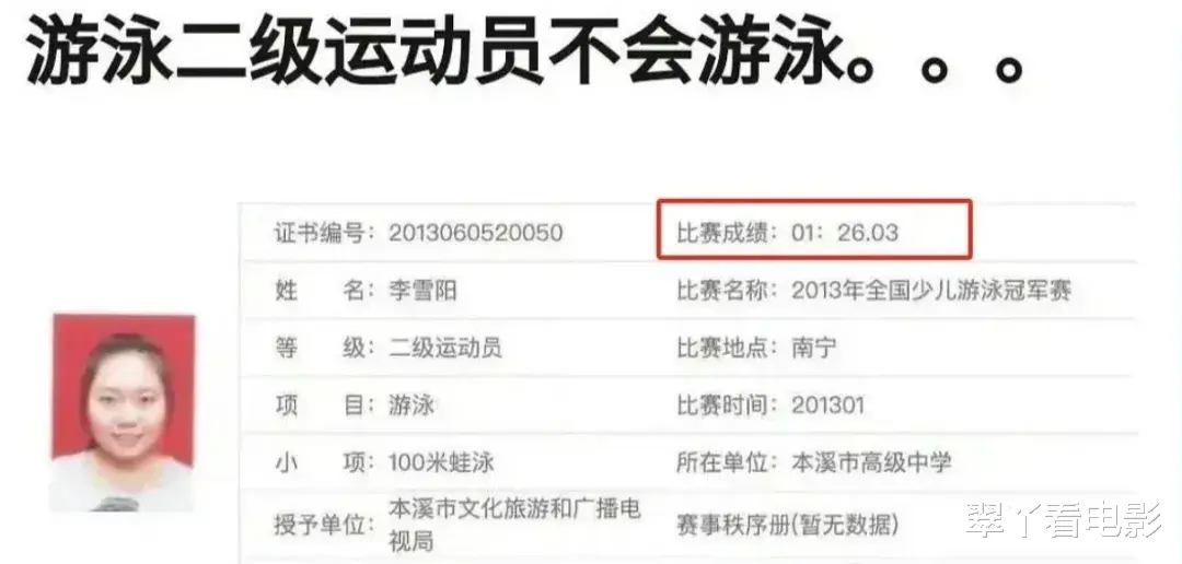 不过,目前已经有媒体联系到李雪琴该证书的发证单位,他们表示已初步在网上查询,李雪阳(李雪琴本名)符合游泳二级运动员资质。