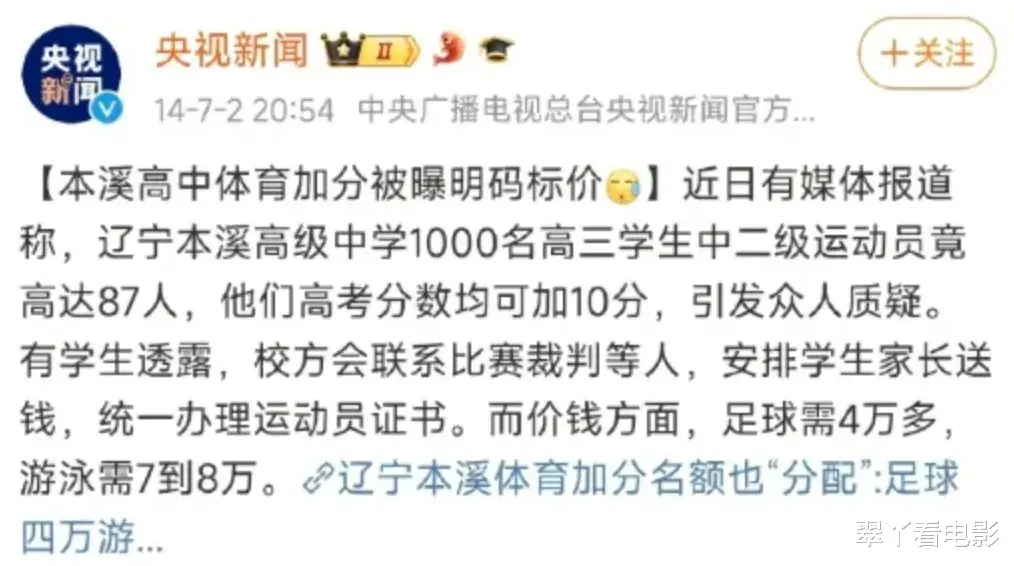 就在李雪琴2013年拿到二级证书后的第二年,她的母校辽宁省本溪高级中学却因为高考体育加分而暴雷,体育办证加分被明码标价,这件事在当年甚至还被央视新闻点名过。