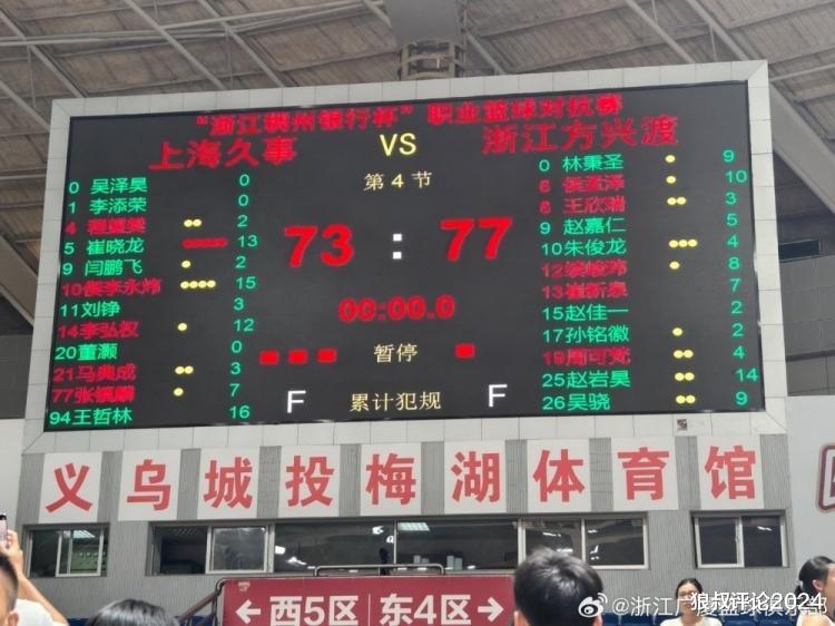 北京时间10月4日,浙江稠州银行杯职业篮球对抗赛,浙江广厦77-73击败上海男篮。